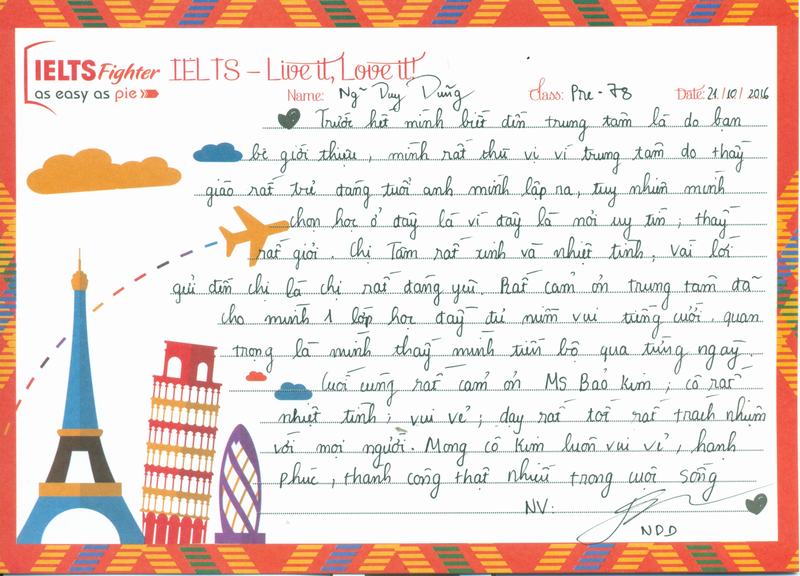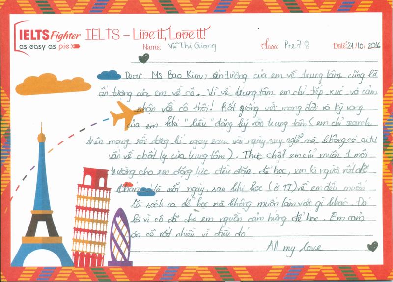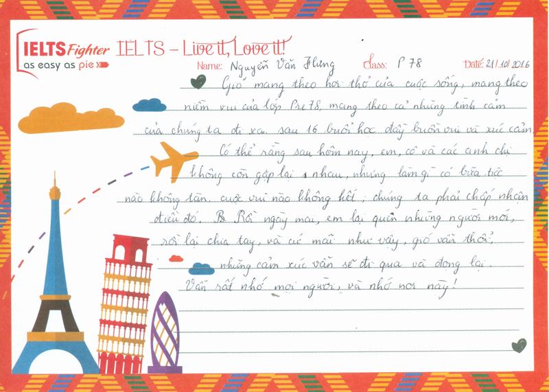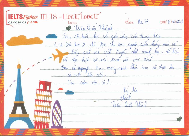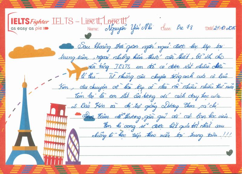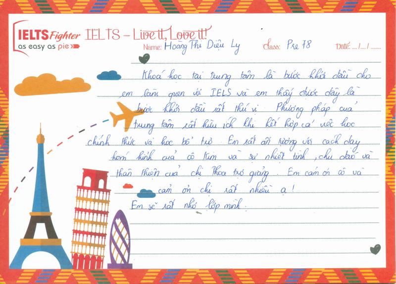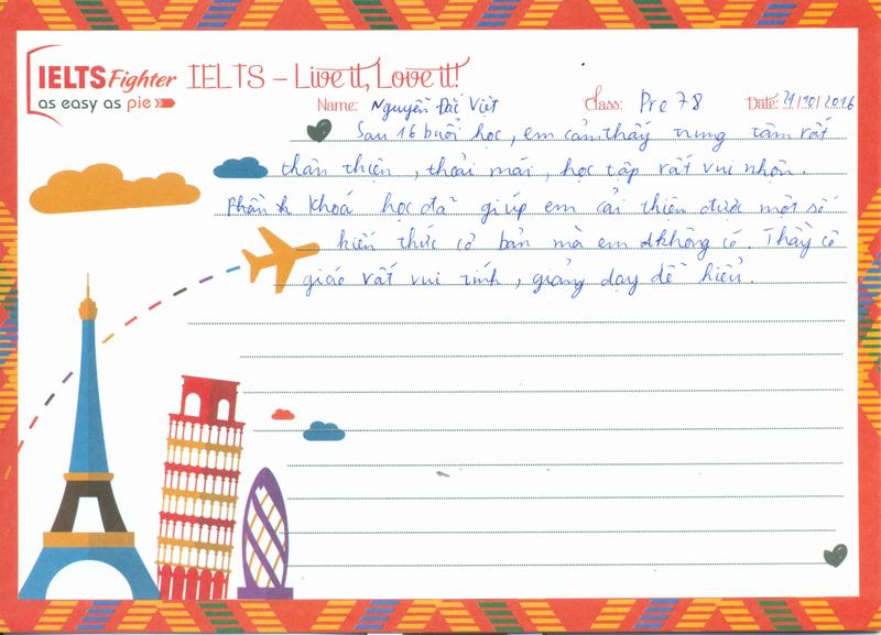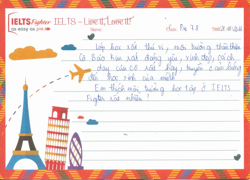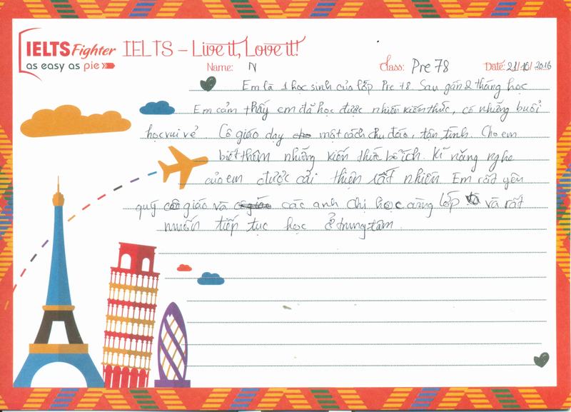 Em thích môi trường học tập ở IELTS Fighter rất nhiều.
