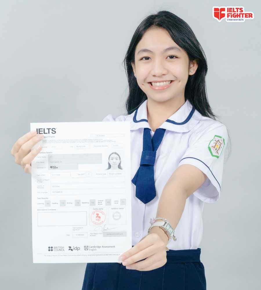 Em xin cảm ơn thầy cô, trung tâm IELTS Fighter và các anh chị tư vấn đã hỗ trợ em thời gian qua. Chúc trung tâm ngày càng phát triển hơn nữa, đồng hành cùng các bạn đạt aim. Chúc mọi người cũng sớm về đích thành công ạ.